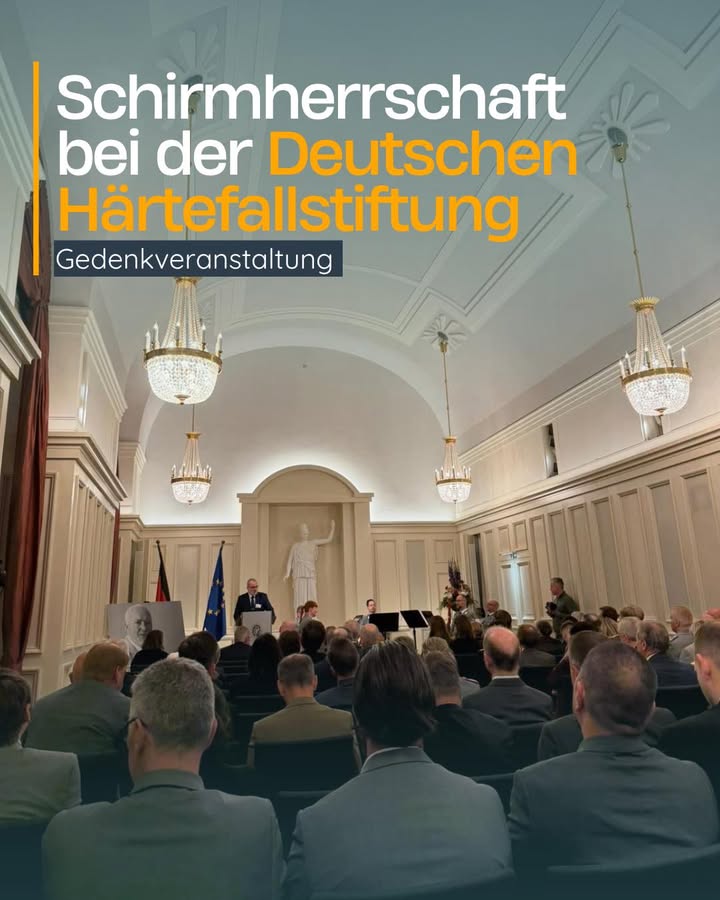 Gestern Abend hatte ich die Ehre, an der Gedenkveranstaltung für Oberst a.D. Bernhard Gertz teilzunehmen. Wir gedenken seiner als langjährigem Vorsitzenden des Deutschen Bundeswehrverbandes und Mitbegründer der Deutschen Härtefallstiftung ? eine Persönlichkeit, der wir viel zu verdanken haben.Es war ein bewegender Moment, hier in Berlin gemeinsam Abschied zu nehmen und sein beeindruckendes Lebenswerk zu würdigen. Die Rolle der Schirmherrin für diesen Anlass zu übernehmen, war für mich eine Selbstverständlichkeit und eine besondere Ehre.Mein aufrichtiger Dank gilt der Deutschen Härtefallstiftung und dem Bildungswerk des Deutschen Bundeswehrverbandes für die würdevolle und bewegende Gestaltung des Abends.#Bundeswehr #DeutscherBundeswehrVerband #Härtefallstiftung #BernhardGertz #Gedenken #Schirmherrin #Tradition