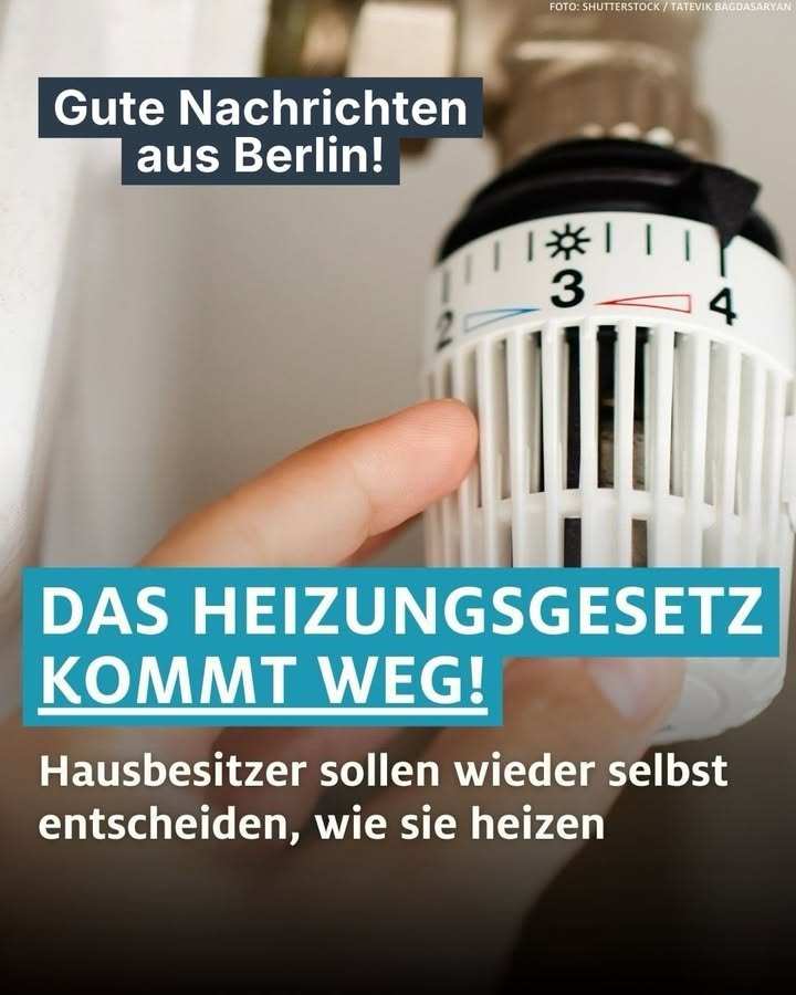 mehrVernunft statt Ideologie: Wir korrigieren das Heizungsgesetz!Gute Nachrichten für Hausbesitzer und Mieter: Die erzwungenen Heizungs-Vorgaben sind Geschichte. Wir haben uns mit unserem Koalitionspartner auf eine deutliche Entschärfung des Gesetzes geeinigt. ✅Das Ziel: Klimaschutz mit Augenmaß, der niemanden überfordert. Die bisherige, bei vielen Bürgern völlig zu Recht kritisierte 65-Prozent-Regel für den Einbau neuer Heizungen ist damit vom Tisch. Wer heute eine Heizung plant, braucht nicht mehr die Sorge zu haben, durch bürokratische Vorgaben vor unlösbare finanzielle oder technische Herausforderungen gestellt zu werden.Wir setzen konsequent auf Technologieoffenheit statt auf Bevormundung. Mit diesem Schritt geben wir den Bürgerinnen und Bürgern Planungssicherheit zurück und setzen auf einen realistischen Weg beim Heizen der Zukunft.#Heizungsgesetz #GEG #Politik #Entlastung #Wohnen