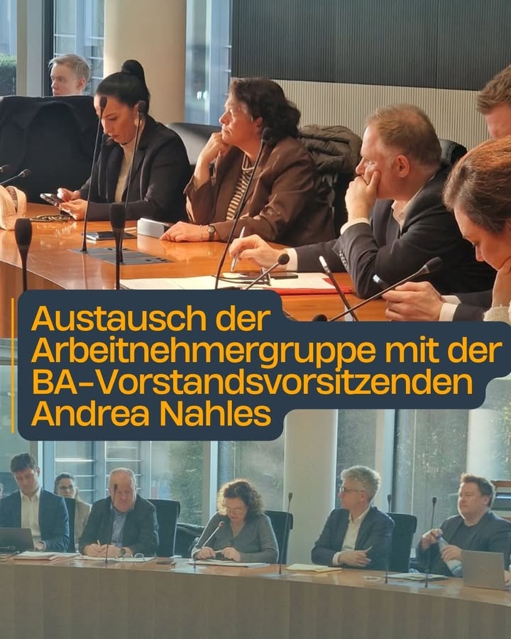 mehrWichtiger Austausch zur BA-Zukunft: Finanzlücke und ArbeitsmarktHeute bei der Sitzung der Arbeitnehmergruppe der CDU/CSU-Fraktion im Bundestag mit der Vorstandsvorsitzenden der Bundesagentur für Arbeit, Andrea Nahles. Die Diskussion war offen und ehrlich und beleuchtete die ernste wirtschaftliche Lage:? Die aktuelle mangelnde Planungssicherheit für unsere Unternehmen und ein schwächelndes Wirtschaftswachstum sind wichtige Gründe dafür, dass Arbeitgeber leider gezwungen sind, Arbeitsplätze zu reduzieren.? Die BA steht vor großen Herausforderungen durch Demografie, Digitalisierung, Transformation und die Integration von Geflüchteten. Gleichzeitig rechnet die BA in diesem Jahr mit einem Minus von 5,2 Milliarden Euro und im Jahr 2026 mit weiteren 4 Milliarden, wodurch die verbleibenden Rücklagen vollständig aufgebraucht wären. Die Vermittlung ist dadurch eine immense Aufgabe.? Besonders alarmierend: Wir sind auf einem 25-jährigen Tiefstand bei der Anzahl der jungen Menschen, die in diesem Jahr eine Ausbildung begonnen haben, 190.000 bisher an der Zahl. Das gefährdet unseren Fachkräftenachwuchs massiv.Angesichts der Milliarden-Defizite in der Arbeitslosenversicherung und einer als "unkomfortabelste Situation" bezeichneten Lage, forderte Andrea Nahles die Bundesregierung klar zu einer vernünftigeren Wirtschaftspolitik auf! Nur wenn die Politik die richtigen Weichen stellt, kann die Planungs- und Arbeitsplatzsicherheit für unsere Arbeitgeber und Arbeitnehmer wiederhergestellt werden. Wir müssen jetzt handeln, um unsere Wirtschaft zu beleben und Arbeits- sowie Ausbildungsplätze nachhaltig zu sichern.#Arbeitnehmergruppe #CDUCSU #BundesagenturFürArbeit #Arbeitsmarkt