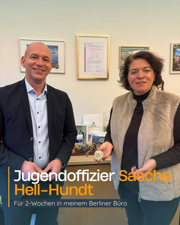 mehrAufklärung schafft Vertrauen: Die zentrale Rolle der JugendoffiziereIch durfte in meinem Berliner Büro im Deutschen Bundestag die letzten zwei Wochen Jugendoffizier Sascha Hell-Hundt begrüßen, eine sehr intensive und aufschlussreiche Zeit für mein Team und mich!Als Mitglied des Verteidigungsausschusses weiß ich: Die Arbeit der Jugendoffiziere ist für unsere wehrhafte Demokratie unverzichtbar und von höchster Bedeutung.Ihre Aufgabe ist es, Transparenz zu schaffen und die notwendige Bindung zwischen unseren Streitkräften und der Zivilgesellschaft zu festigen. Dabei liegt ein besonderer Schwerpunkt auf der Jugendarbeit: Sie ermöglichen es jungen Menschen, sich fundiert, politisch mündig und abseits von Polemik mit komplexen Themen wie Sicherheitspolitik, Wehrdienst, Auslandseinsätzen und den Werten der Bundeswehr auseinanderzusetzen.Sie sind eine wichtige Brücke, die Aufklärung liefert und das Verständnis für die Rolle der Bundeswehr in unserer Gesellschaft stärkt.Herzlichen Dank an Herrn Hell-Hundt für seinen engagierten Einsatz, die wertvollen Impulse und seine täglich so wichtige Arbeit!#KerstinViereggeMdB #Verteidigungsausschuss #Bundeswehr #Jugendoffizier #Jugendarbeit #Sicherheitspolitik #Zivilgesellschaft #PolitischeBildung