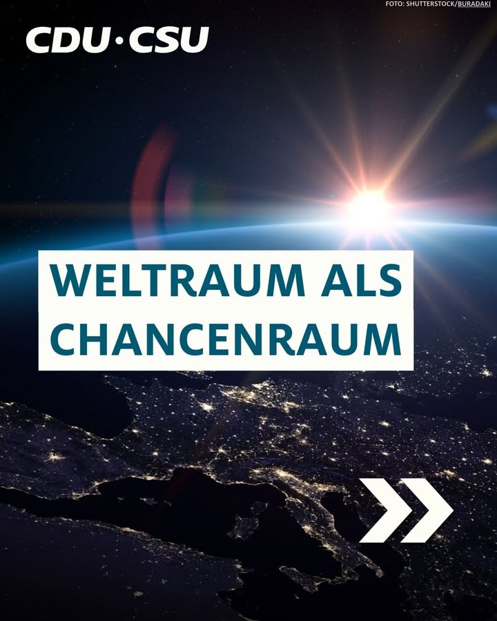 mehrWeltraum als ChancenraumDer Weltraum ist weit mehr als nur Forschung und Abenteuer. Er ist ein fundamentaler Chancenraum für unsere gesamte Gesellschaft: Von der Erdbeobachtung für den Klimaschutz über sichere Satellitenkommunikation bis hin zu neuen Materialentwicklungen ? die Technologien des Alls sind Jobmotor und Innovationsquelle hier auf der Erde.Die Absichtserklärung von Land, der European Space Agency und das Deutsche zentrum für Luft- und Raumfahrt, das ESA-Direktorat Human and Robotic Exploration (HRE) vollständig nach Köln zu verlagern, ist ein strategischer Meilenstein. Damit verankern wir NRW dauerhaft im Zentrum der europäischen Raumfahrtaktivitäten und schaffen hunderte hochqualifizierte Arbeitsplätze im Forschungs- und Technologiebereich.Der Ausbau des Standortes Köln mit dem Europäischen Astronautenzentrum (EAC) und der Mondsimulationsanlage LUNA zeigt: Wir setzen das strategische Ziel, den Weltraum als Wirtschaftsfaktor zu nutzen, konsequent um.#Raumfahrt #Chancenraum #Weltraum #CDUCSU